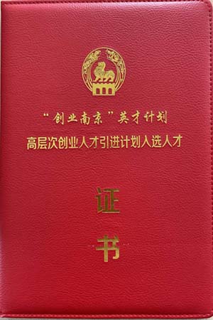 公司獲得南京市:創業南京英才計劃 - 高層次創業人才引進計劃人選人才